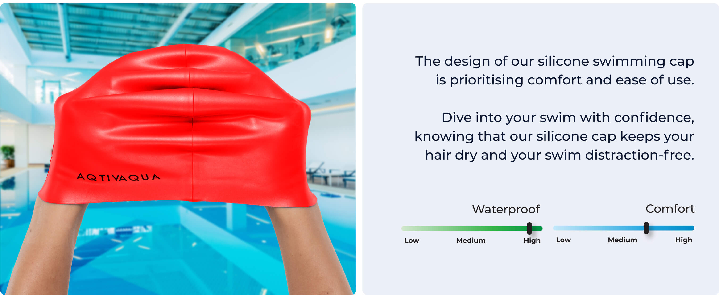 - [Protección impermeable inigualable] - El gorro de natación de silicona AqtivAqua proporciona protección impermeable de primer nivel. Ya no tendrás que preocuparte de que tu cabello se moje o de que una piscina con cloro arruine tu color. Diseñado con 100% silicona, este gorro de natación sella el agua para una experiencia de natación seca y cómoda.